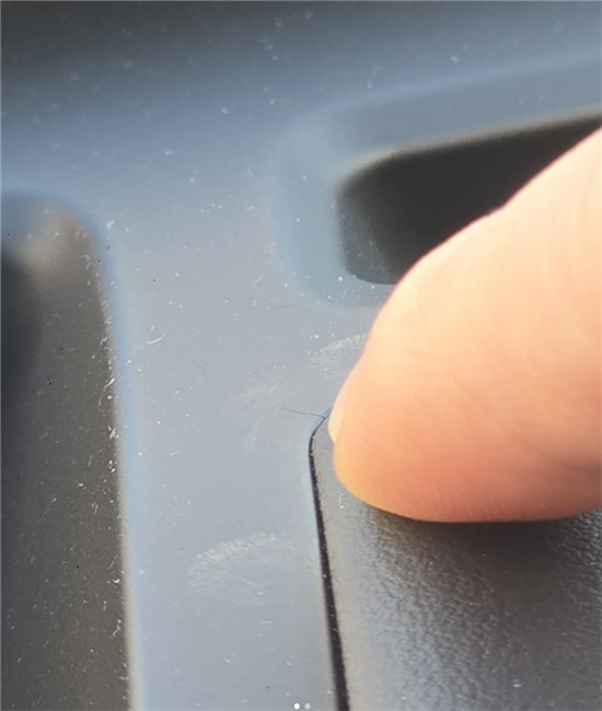多位魏牌車主近日在網(wǎng)上發(fā)帖爆料稱,藍(lán)山中控臺HUD旁邊塑料框架裂開,且開裂的位置和大小也基本一致。