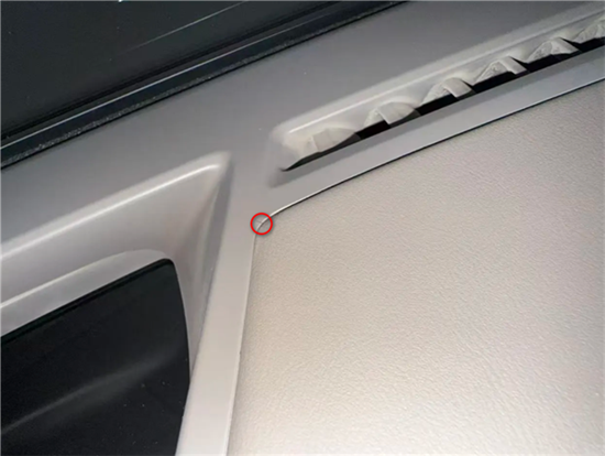 經(jīng)核查,該問題是由于裝飾板安裝過程操作不當(dāng),產(chǎn)生應(yīng)力集中,進(jìn)而導(dǎo)致局部裂紋。此部件為裝飾作用,不影響功能使用。