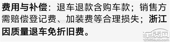方向機更換兩次后再次出現(xiàn)故障嚴重影響安全用車,與廠家領(lǐng)導(dǎo)溝通后愿按國家汽車三包法給我退車,要我承擔(dān)折舊費。但是浙江三包法也有規(guī)定,汽車因質(zhì)量問題導(dǎo)致退車的免折舊費,全額退款。
